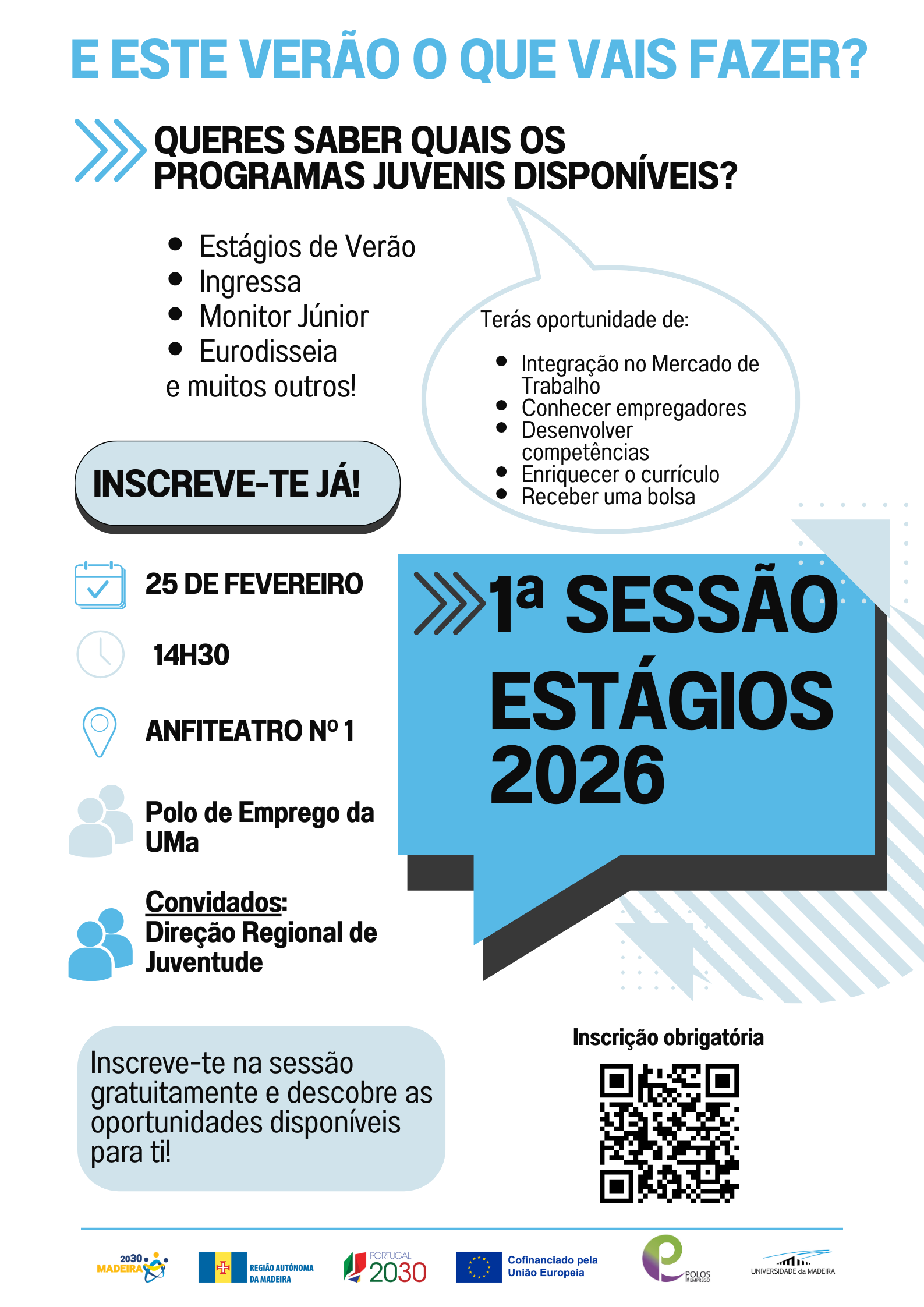 O Polo de Emprego da UMa convida-vos para a 1ª Sessão Estágios 2026!